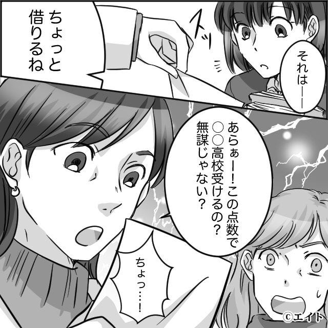 模試の結果を勝手に見て…「無謀じゃない?」娘に直接イヤミを言うママ友。しかし直後⇒娘の【反撃】に「え…」
