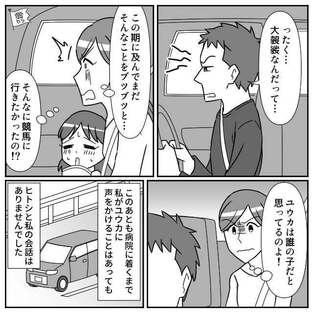 病院へ向かう車内は、会話もなく冷えた沈黙が流れていました。