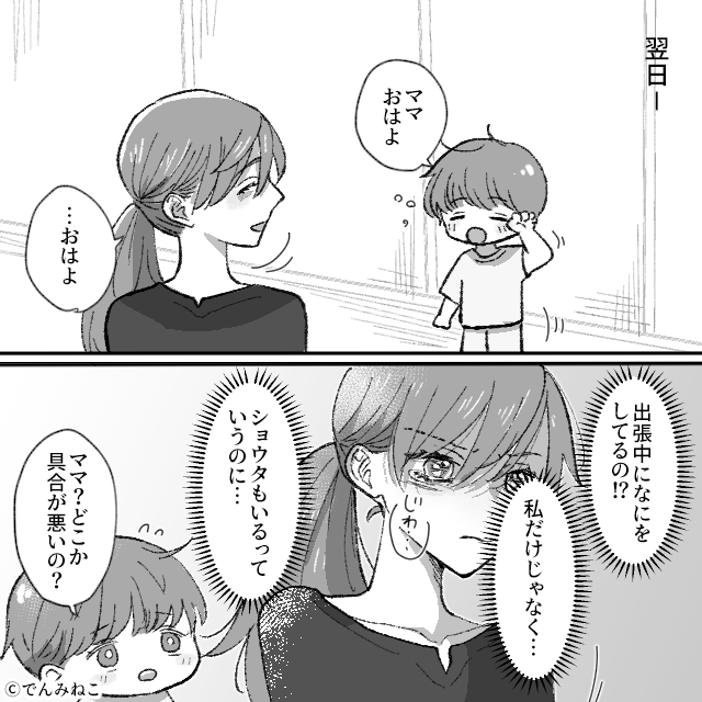 出張中になにをしてるの!?息子もいるっていうのに…。