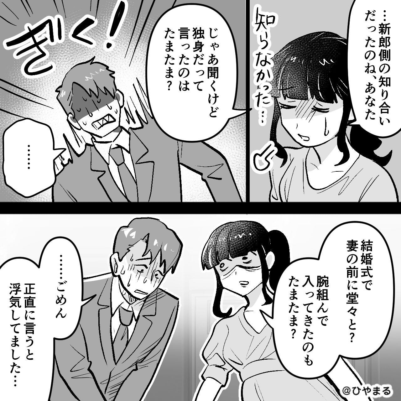 友人の結婚式で…女「独身って聞いてた♡」妻「は?」夫が浮気相手と登場。しかし直後⇒ゲストに囲まれる中【天罰】を下す!?
