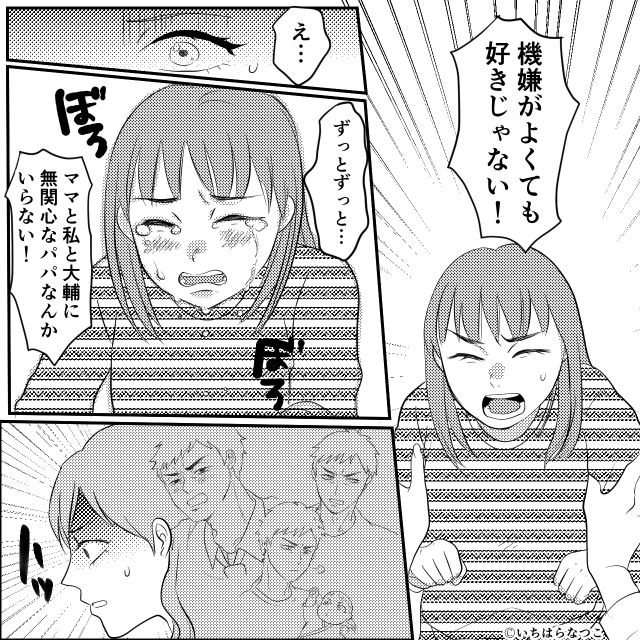 しかし娘は「パパのこと機嫌がよくても好きじゃない!ママと私たちに無関心なパパなんか、いらない!」と涙を流したのです。