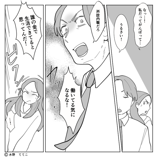 「在宅で小銭稼ぎなんてラクでいいよな」「働いてる気になるな」「誰の金で生活できてると思ってるんだ」と、心ない言葉を何度もぶつけてきます。