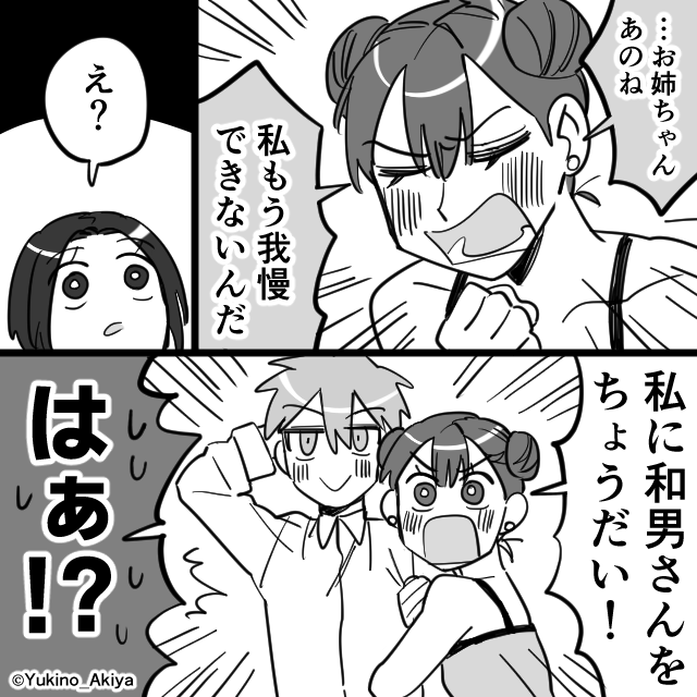 「私もう我慢できないんだ。私にお姉ちゃんの旦那さんをちょうだい!」
