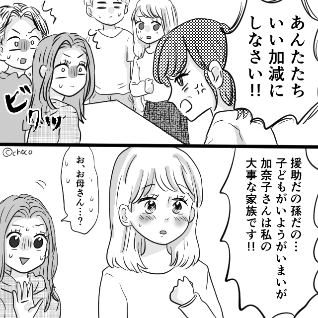 ところが、そのとき「あんたたち…いい加減にしなさい!」と、義母が義姉と義父を一喝。