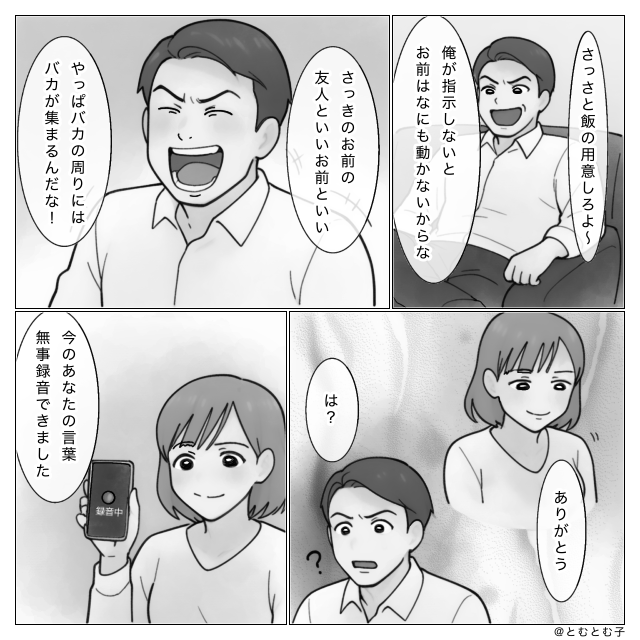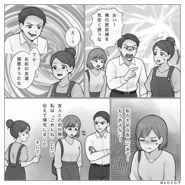 友人の前で「お前の友人は頭悪い!」暴言を吐くモラ夫。だが帰宅後⇒『ありがとう』妻が夫に感謝した【ワケ】