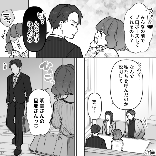 “略奪愛”を成就させ、奥さんの前でプロポーズさせる女。しかし⇒彼が裏で進めていた【計画】に「え…」