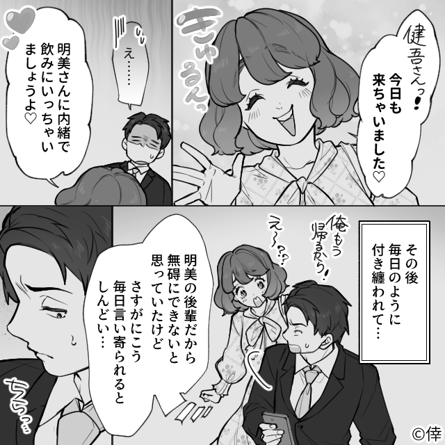 「実は…」後輩は夫の帰宅時間を狙い、毎日のように付き纏っていたのです。