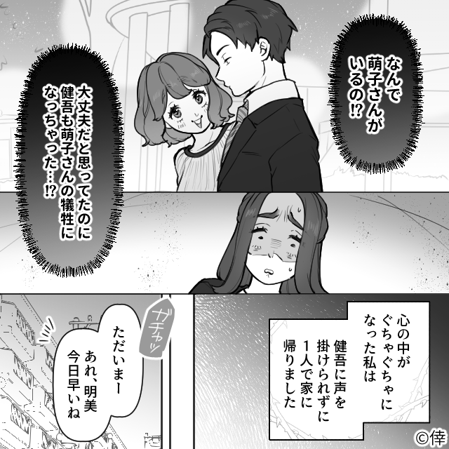 一方、後輩は夫の横でにやにやと薄笑いを浮かべていました。