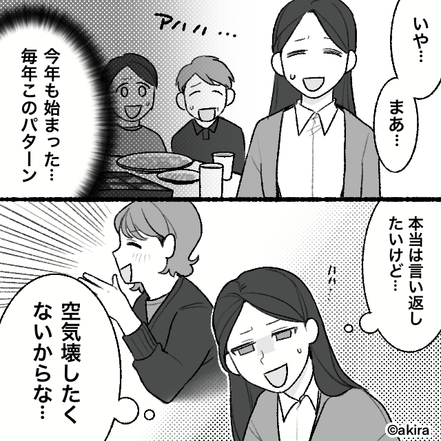 親戚が集まる晴れやかな席で、わざわざ他人の家庭に踏み込み、優越感に浸ろうとするマウント行為。