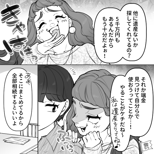 「他に遺産がないか探してくれてるの?5000万円もあるんだから、もう十分だよぉ!」