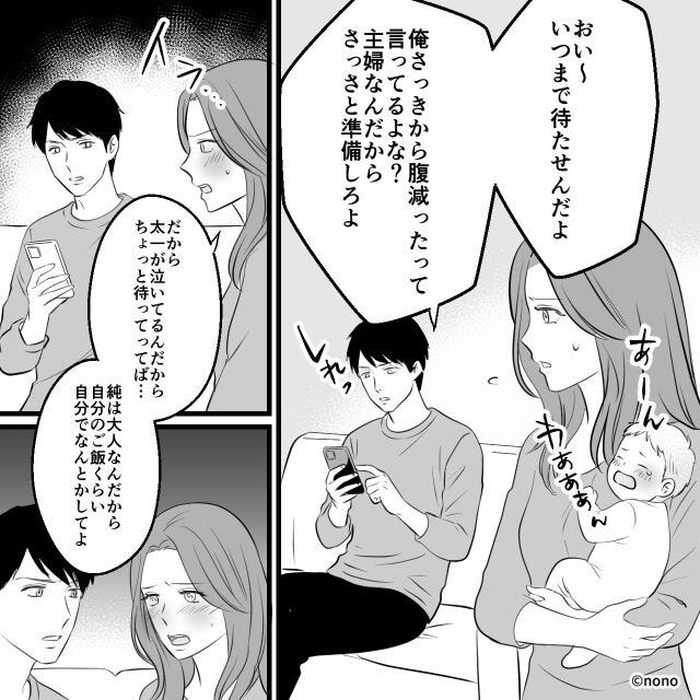 それどころか、泣き止まない子どもの世話で食卓の準備が数分遅れただけで、「いつまで待たせるんだ!」と怒鳴り散らします。 睡眠不足でフラフラになりながら尽くしても、夫にとっては自分の食事が最優先。 協力どころか、追い詰められる日々に心が折れそうでした。