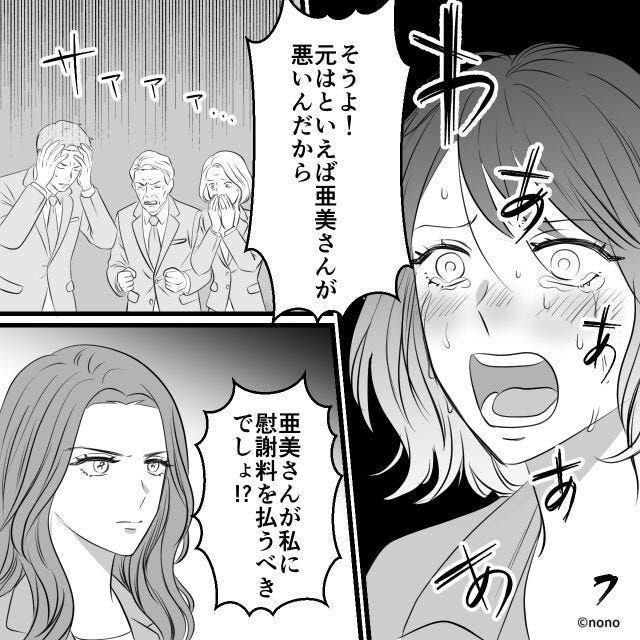 すると彼女は逆上し「元々はあんたが彼を私から奪ったのよ!慰謝料を払うのはあんたの方でしょ!」と、自分勝手な理不尽極まりない持論を叫び散らしたのです。