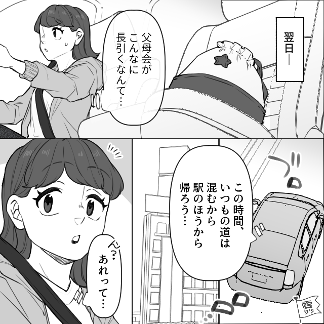 翌日、私は父母会のあとで息子の忘れものを取りに行き、帰宅するところでした。