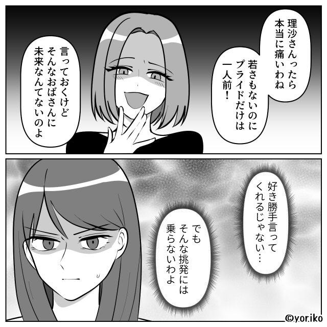 さらにママ友まで「若くないのにプライドは一人前」「おばさんに未来はない」と挑発してきたのです。
