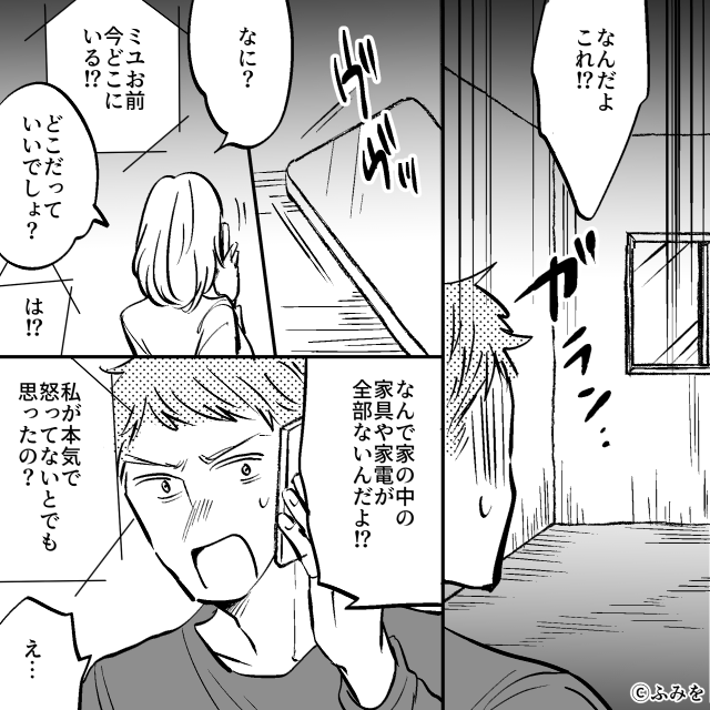 夫は「なんだよこれ!家具も家電も全部ないんだけど!」と慌てた様子。