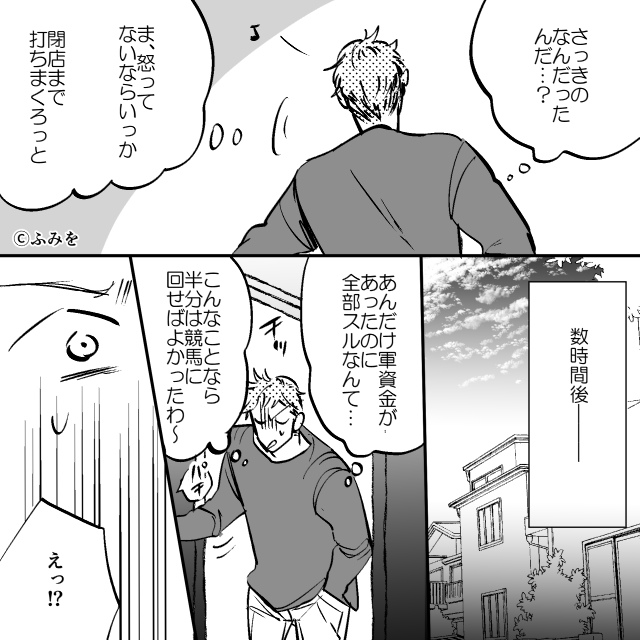 パチンコ店が閉店するまで、やり続け「あんだけ軍資金があったのに、全部スるなんて」「競馬に回せばよかった」と夫は朝方に帰宅…。