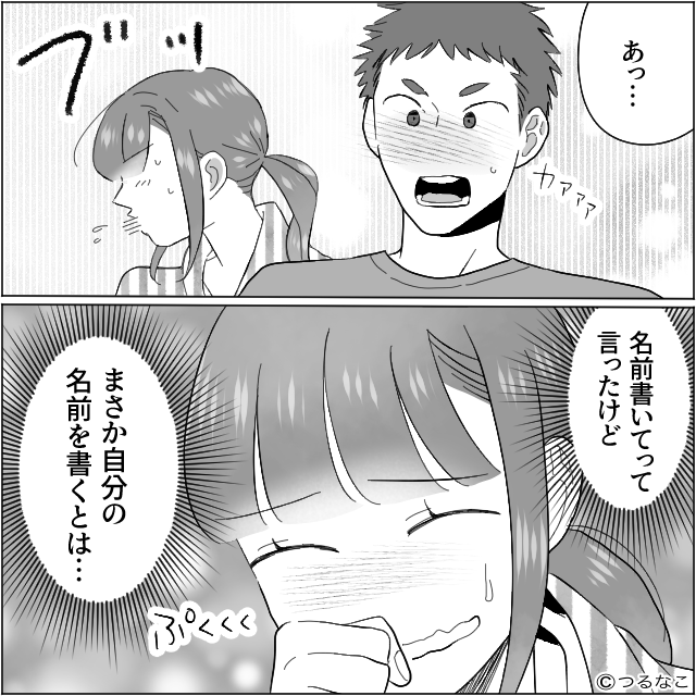 夫もさすがに恥ずかしかったらしく「あっ…」と真っ赤になって固まっています。