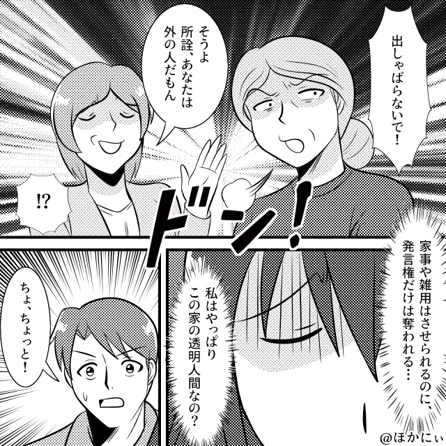 家事を押しつける義母が…家族会議では嫁を他人扱い!?しかし⇒「ちょっと!」ヘラヘラしていた夫がついに動き出した話。