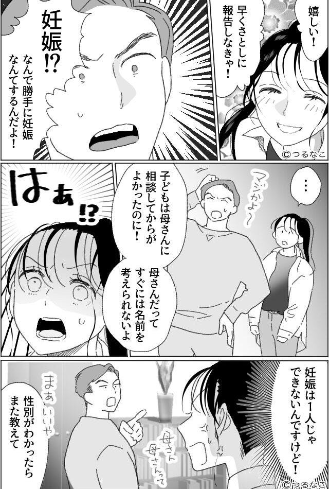 喜びの一言もなく、夫が口にしたのは「勝手に妊娠するなよ」という信じられない言葉。 さらには「子どもは母さんに相談してからがよかった」と不満げに続けられたんです。