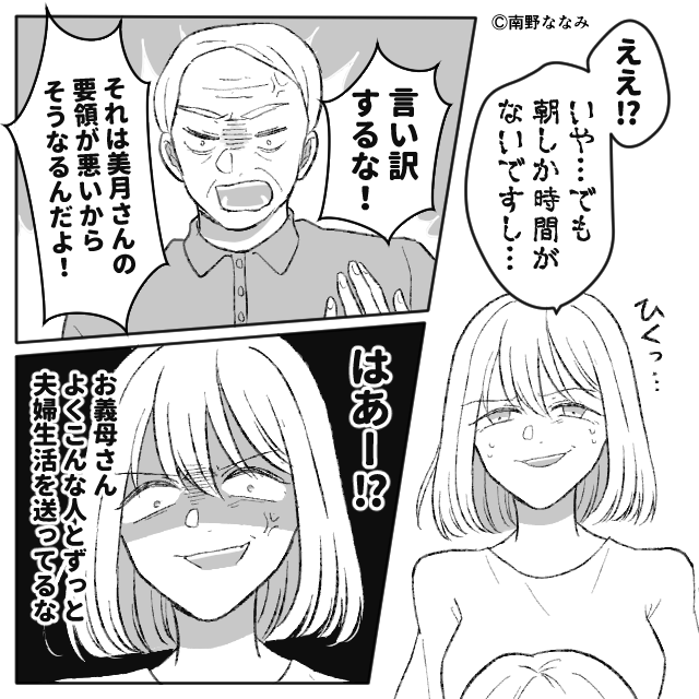 義父もそれを理解しているのか、動揺しながら必死で義母の顔色をうかがっているように見えます。