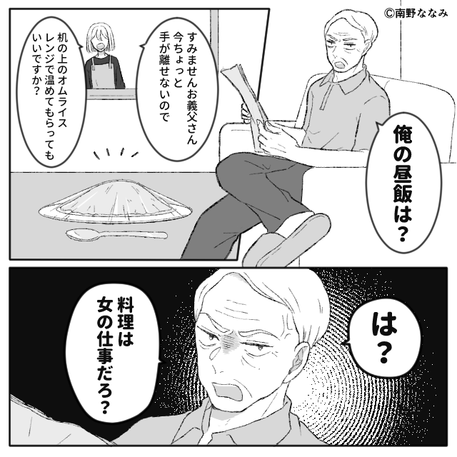 「料理は女の仕事だろ」レンジすら嫁にやらせる義父。だが⇒「そんな権利ある?」義母の”強反撃”で義父に圧倒的勝利!?