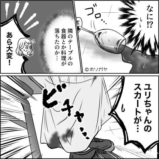 ワインをこぼした張本人である隣の席の女性からの謝罪はなし。