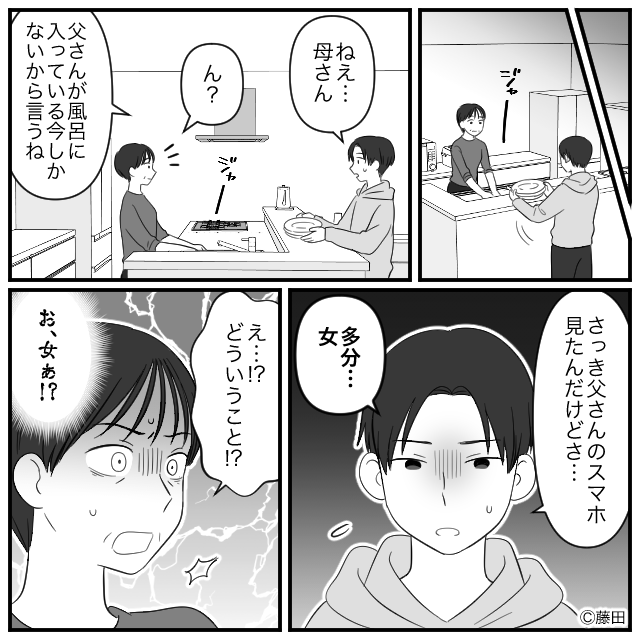 息子が何気なく近づいて画面を見たところ、夫が女性と親しげにやり取りをしているのを目撃。