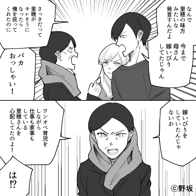 すると義母が車から戻ってきて「いつまで嫁を苦しめるの?」と夫に糾弾してくれて…。