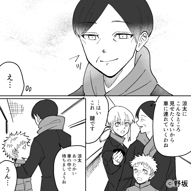 「こんなところ見せたくないから」と言って、息子を連れて車に戻る義母。