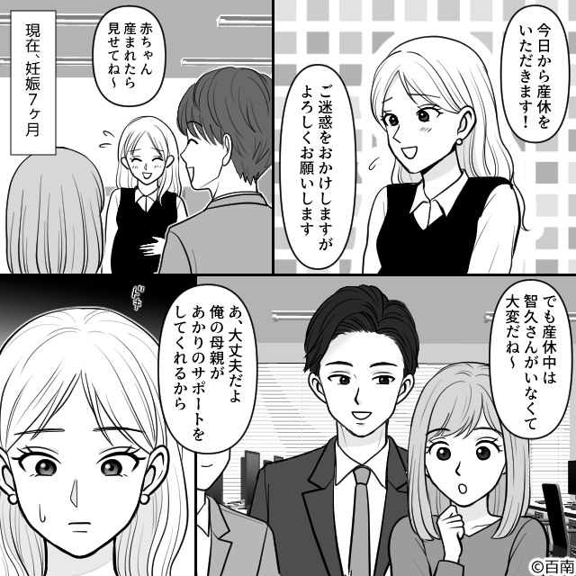 同じ職場で働く夫との子どもを授かり、産休をとることに。