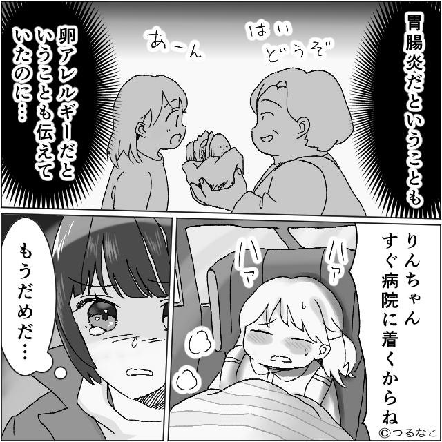 「欲しがったから」と悪びれない義母ですが、卵を含む食品を与えてしまっていて…。 幸い命に別状はありませんでしたが、義母の無神経さに背筋が凍りつき、もはや言葉もありませんでした。