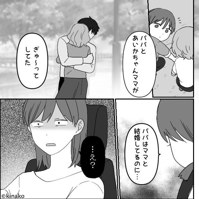 そんなある日、公園で遊んだ子どもの表情が暗いことが気になっていました。 子どもに理由を尋ねると、信じられない回答が返ってきました。 「パパがね…」と口を開き、なんと公園で夫とママ友が抱き合っていたというのです。