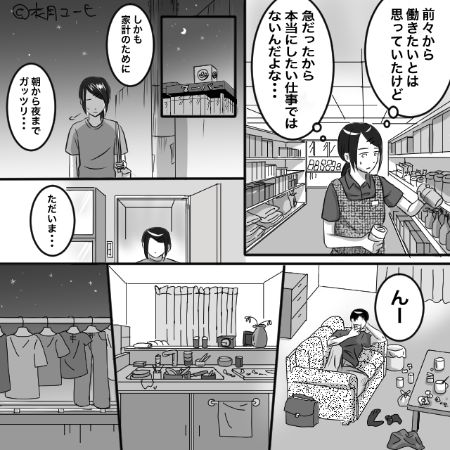 しかし、家計のために朝から夜まで働くしかありませんでした。