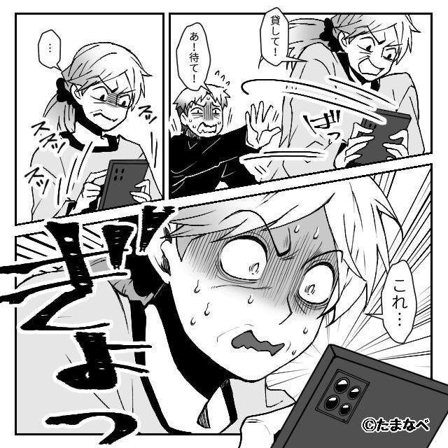異変を察した中年男性の妻が携帯を力ずくで奪い取りました。