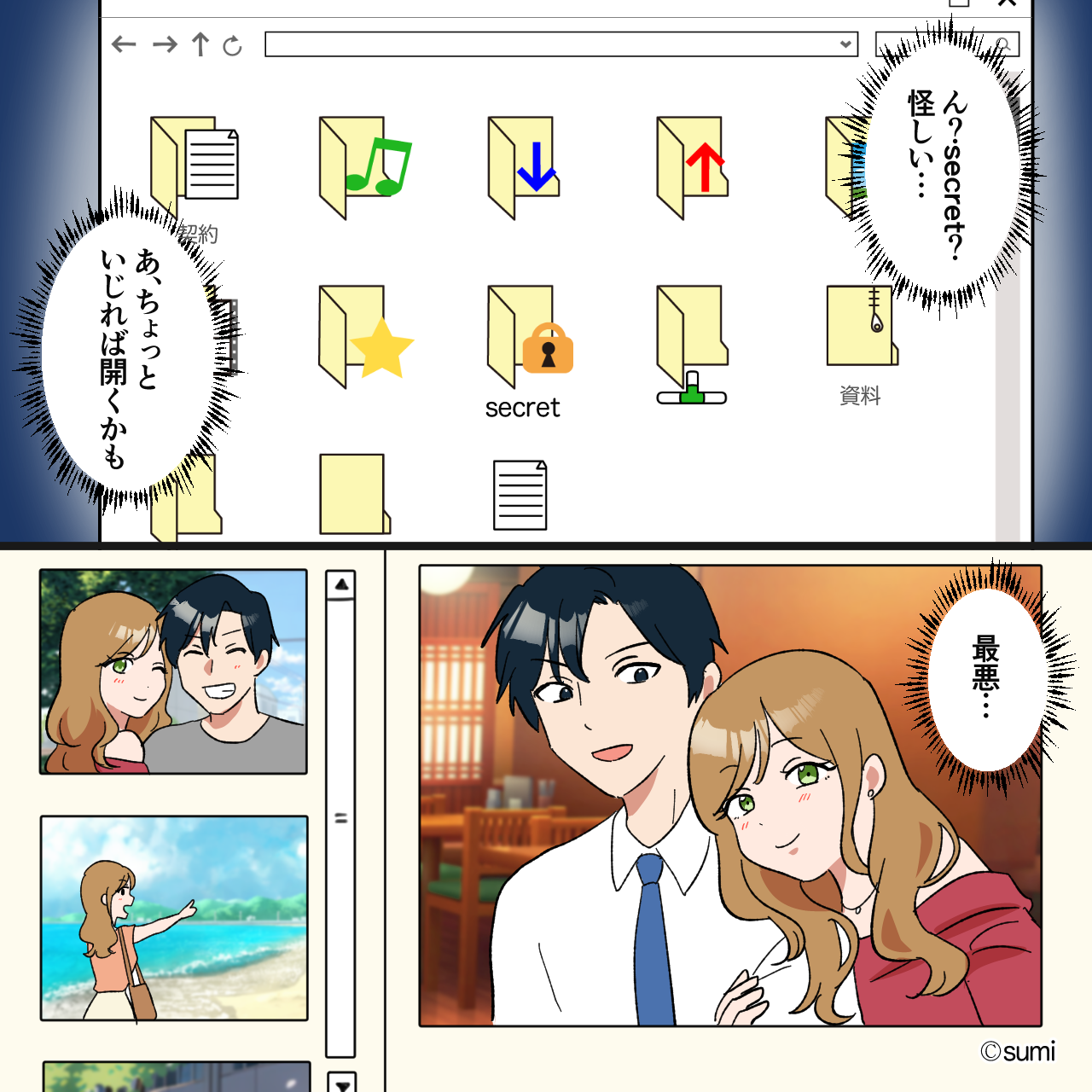システムを通じ、夫のパソコンにあった怪しいフォルダを見つけた私。