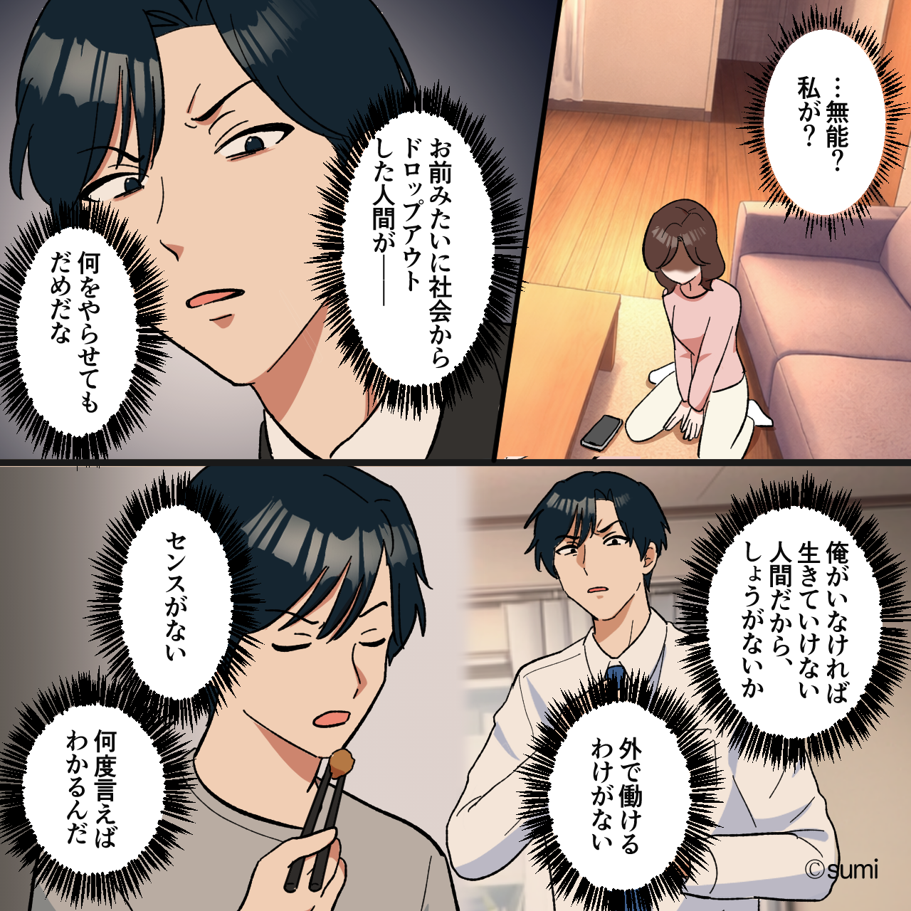 家事にケチをつけ「社会からドロップアウトしたくせに」と決めつける、夫の言葉の暴力。