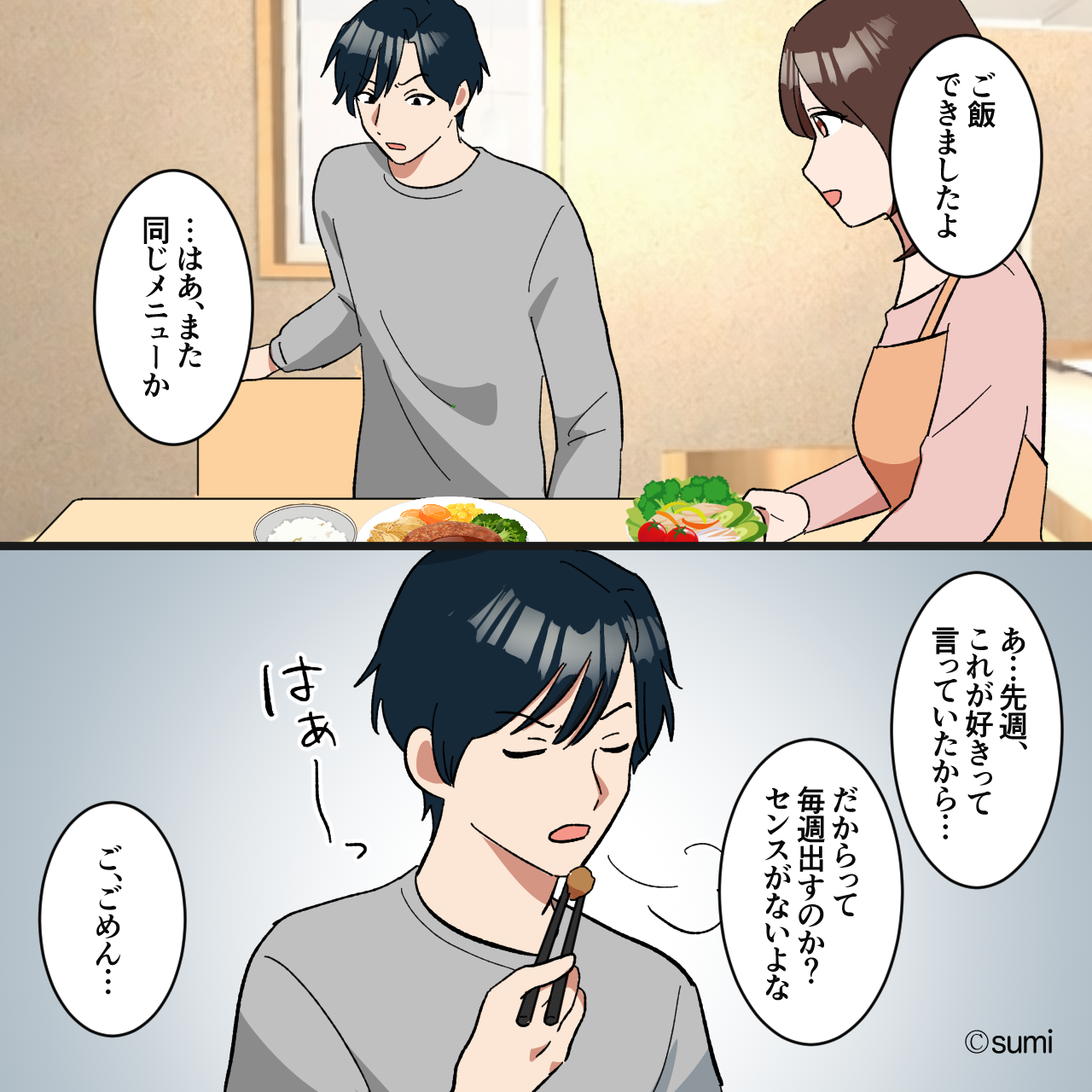 私にだけ激マズの料理を出す義母→義母の味方をする夫と食事を交換したら夫の箸が止まったハウコレ -
