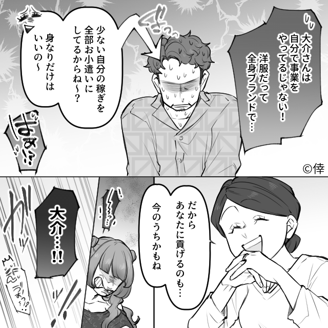 夫のお金に寄生している自分のことは棚にあげて、彼女は喚き散らします。