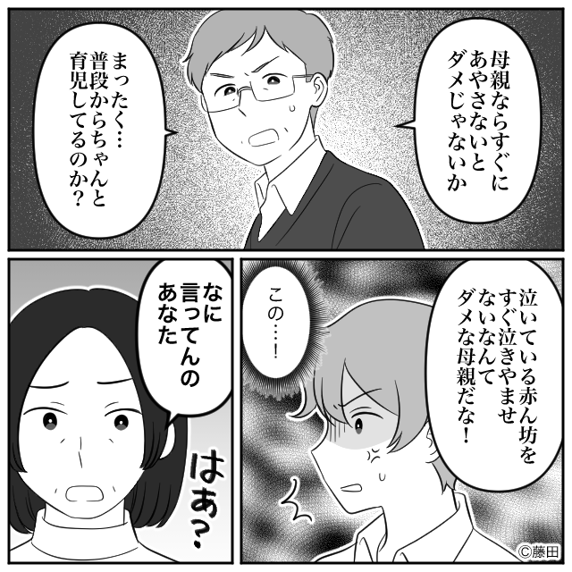 「母親なんだから、すぐに赤ん坊を泣きやませなきゃダメじゃないか」