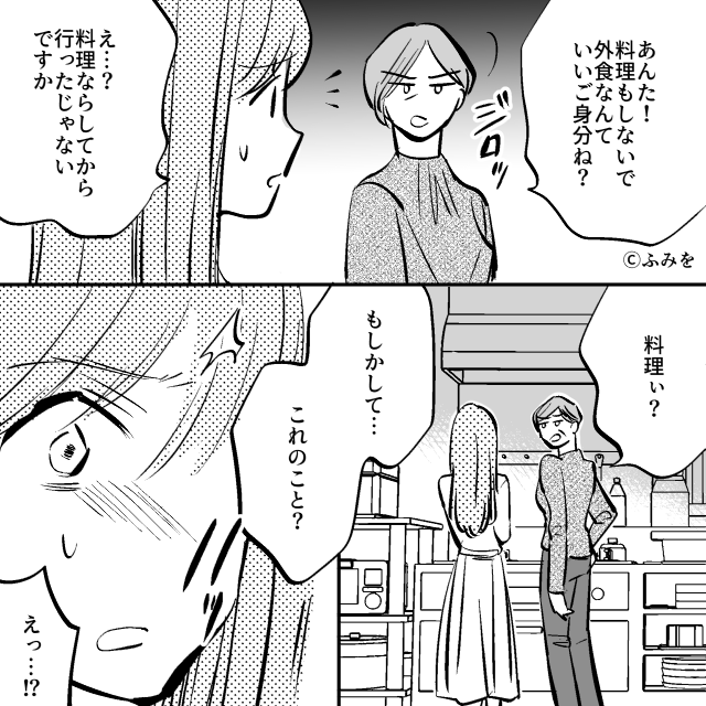 「あんた!料理もしないで外食なんていいご身分ね?」