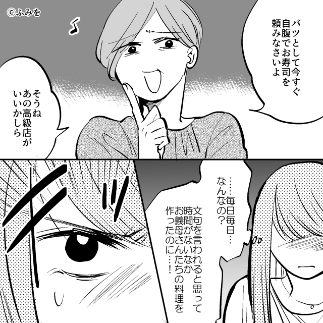 心を込めて作った料理をゴミと呼び、給料の半分までも要求する義母。