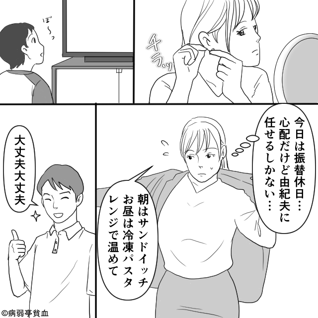 夫を信頼して任せたけれど、家事や子どもの世話が心配で足早に帰ってみたら…。