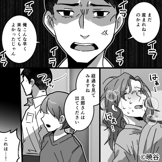 なかなか産まれてこないことに、夫のイライラは限界に達していました。