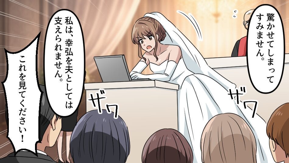 さらに、会場が静まり返る中、私は事前に用意していた復讐を開始。 彼と会場に紛れ込んでいた浮気相手の顔は一瞬で真っ青に。 徹底的に2人を地獄へと突き落としました。