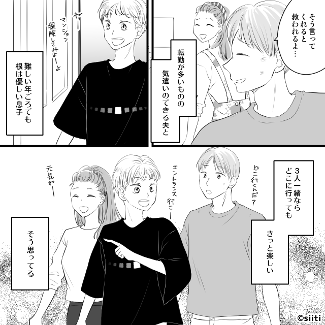 転勤が多いものの気遣いのできる夫と、難しい年ごろでも根は優しい息子との暮らし。