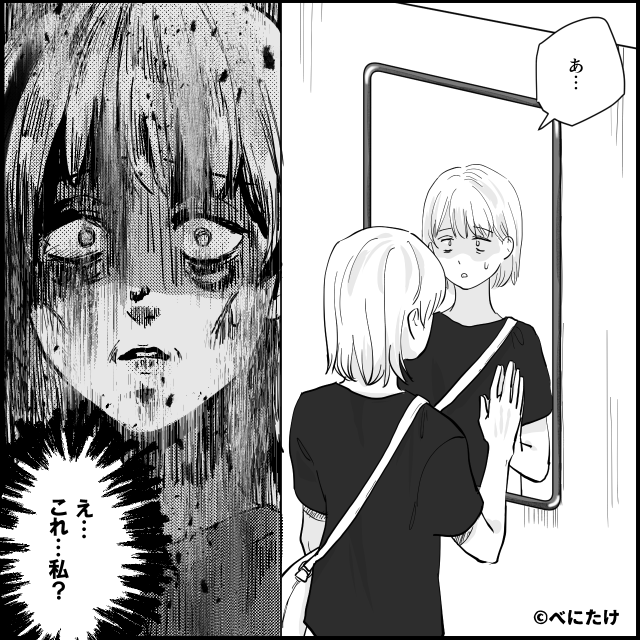 不安になり、洗面所へ向かって鏡を見た瞬間、息が止まりました。
