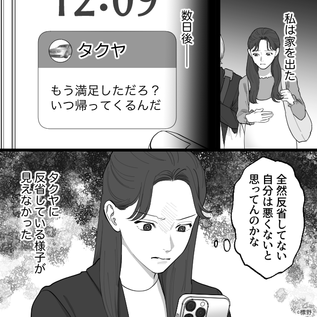 妊娠中、夫の言動によるストレスで倒れた妻は、母の一言をきっかけに動き出します。