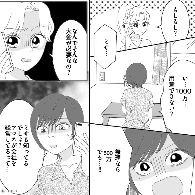 「彼の経営してる会社が存続の危機で…それを立て直すために多額のお金が必要らしいの」