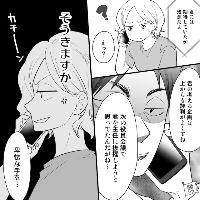 「君の考える企画は上からも評判がよくてね。次の役員会議で君を主任に抜擢しようと思ってたんだがね〜」