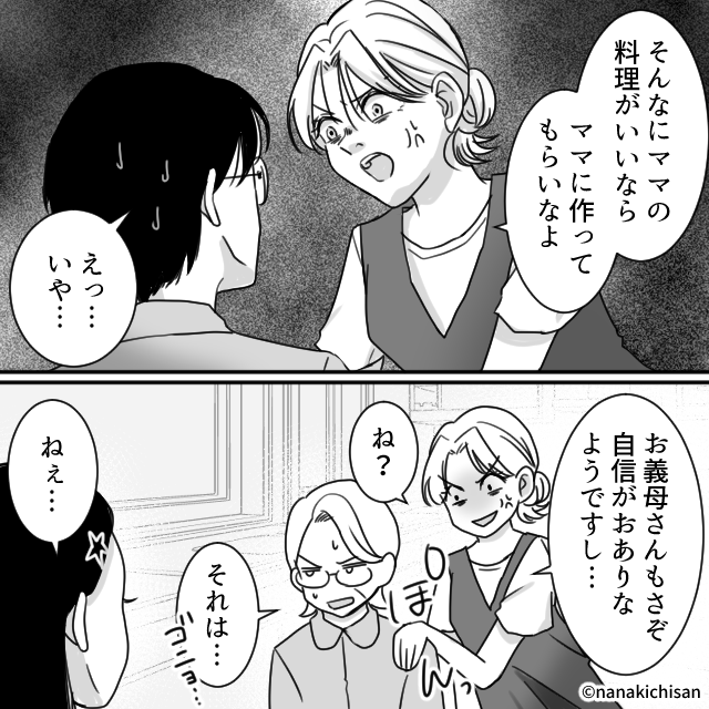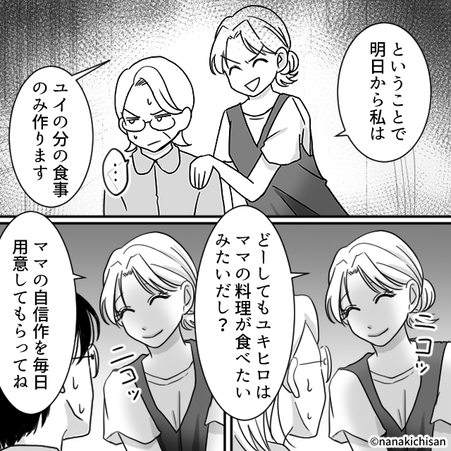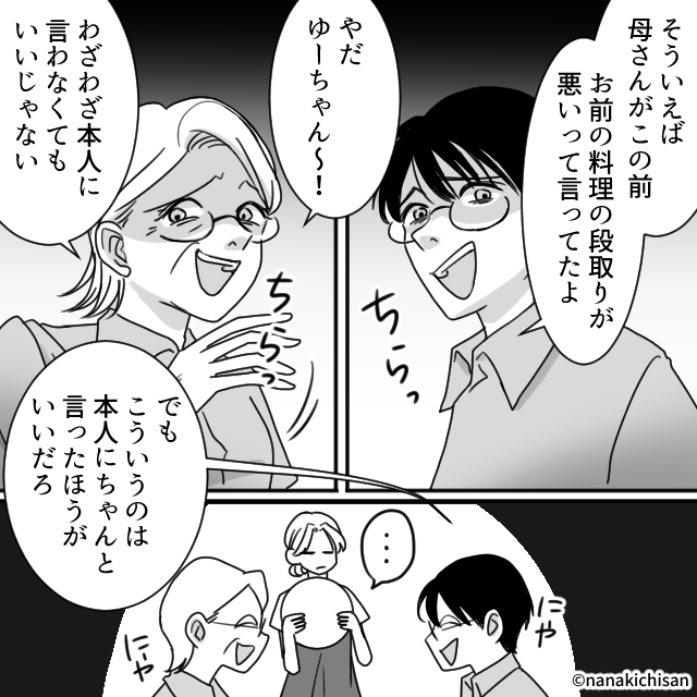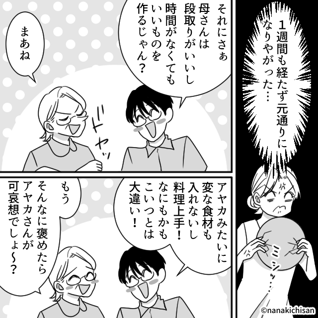 反省したかに見えた夫と義母が、数日後にはまた嫁の料理を貶し始める…。